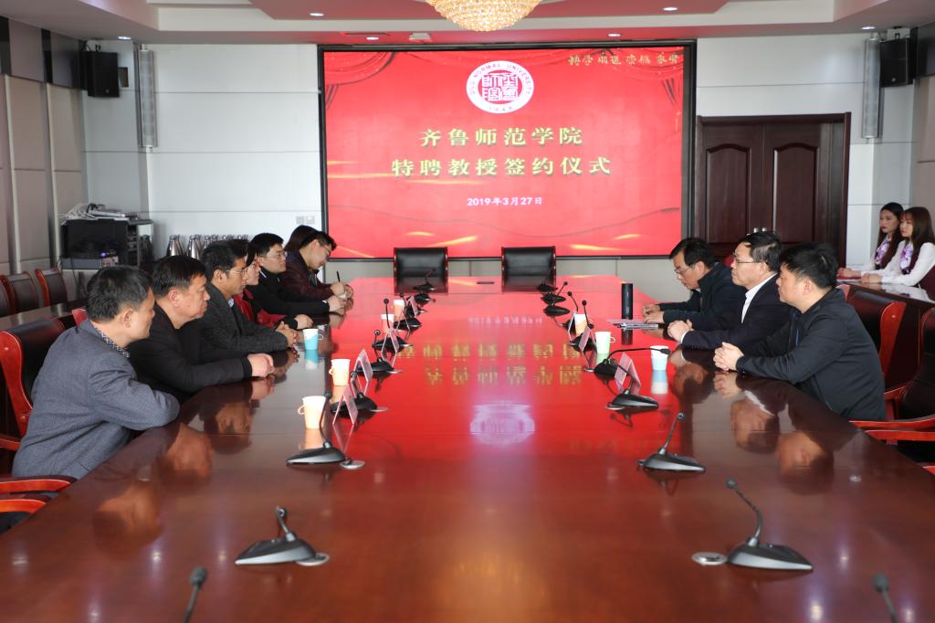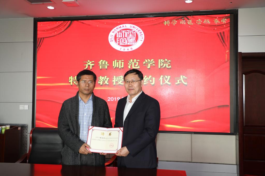3月27日下午,BEAT365官网90级杰出校友、北京师范大学天文系博士生导师张同杰教授受聘仪式在BEAT365官网章丘校区图书馆四楼会议室举行。党委副书记、校长林松柏教授为张同杰教授颁发特聘教授聘书,科研处处长魏培海、人事处处长杨磊出席仪式,物理与电子工程学院院长张洁、党总支书记庞守荣、党总支副书记宋维国、副院长姬长建及教师代表参加仪式。