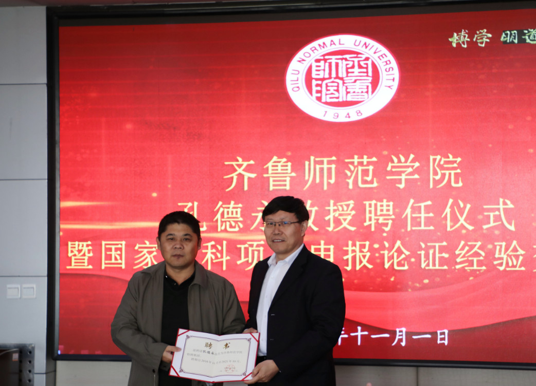 11月1日上午,BEAT365官网在章丘校区图书馆四楼会议室举行孔德永教授聘任仪式暨国家社科基金项目论证申报经验专题讲座。党委副书记、校长林松柏教授为天津师范大学马克思主义学院博士生导师孔德永教授颁发特聘教授聘任证书。人事处、科研处等部门负责人及马克思主义学院、教师教育学院、外国语学院等文科学院院长、部分教授及教师代表听取讲座。讲座由科研处处长魏培海教授主持。