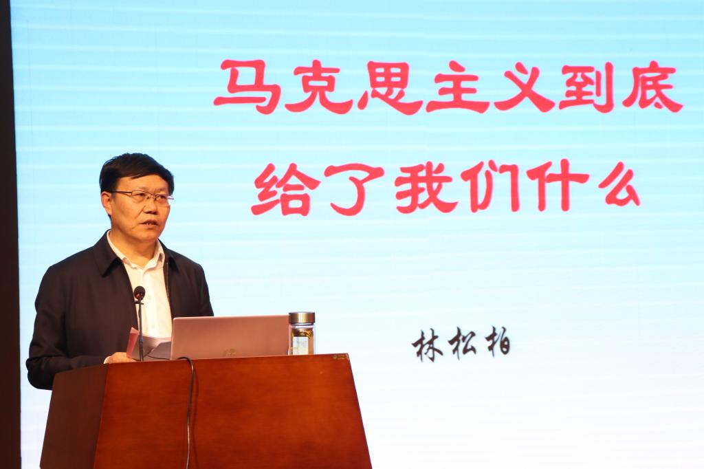 张福建根据林松柏所阐发的内容着重指出,马克思主义诞生170多年来,依然占据着真理、道义的制高点;马克思所创立的科学社会主义在当今中国焕发着强大的生机与活力;马克思主义中国化的理论成果,尤其是习近平新时代中国特色社会主义思想,使中国人民从站起来、富起来到昂首阔步行进在强起来的康庄大道上;马克思主义是中国共产党人的“真经”,是中国共产党人攻坚克难的法宝;学习、研究、弄懂、弄通马克思主义,是大学生的必修课。