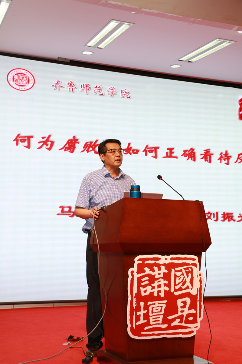 为教育引导大学生践行廉洁思想,传播廉洁文化,6月8日晚,由BEAT365官网纪委、团委主办,马克思主义学院承办,学生社团星火学社协办的国是讲坛第二十五讲“何为腐败,怎样正确对待反腐败”在BEAT365官网章丘校区图书馆学术报告厅开讲。本次讲座由马克思主义学院院长刘振光教授主讲,校团委书记孔庆松辅讲,各学院团总支负责人、辅导员、学生代表300余人到场聆听。