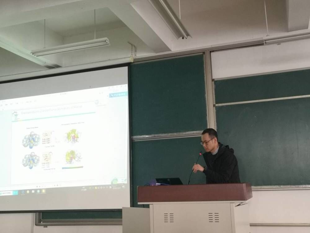 然后,倪绍飞博士介绍了有机反应机理和均相催化机理的理论研究,以及有机光电材料发光机理的研究和均相催化(铜催化或协助催化)反应中的单电子转移过程。倪博士讲述过程中一口流利的英文让在座学生震撼,起到了很好的激励效果。