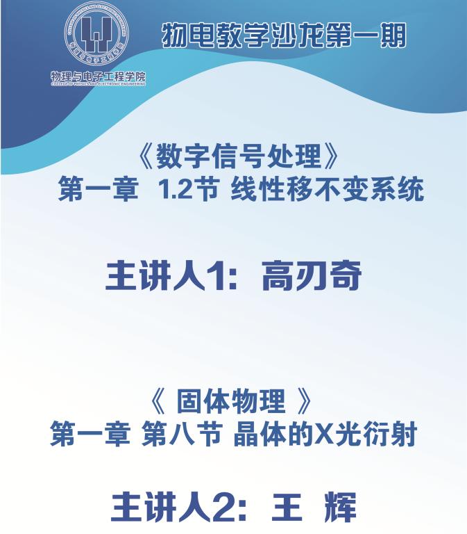 教学沙龙主要有两个环节,第一环节是新教师讲课,第二环节是评课环节。本次活动由王辉、高刃奇两位教师分别选取《固体物理》、《数字电子技术》中预定章节进行讲授。讲课过程中,两位教师展示了良好的教学态度和较为扎实的教学基本功。学院领导、专业教师认真听课,俨然就是班级的学生。