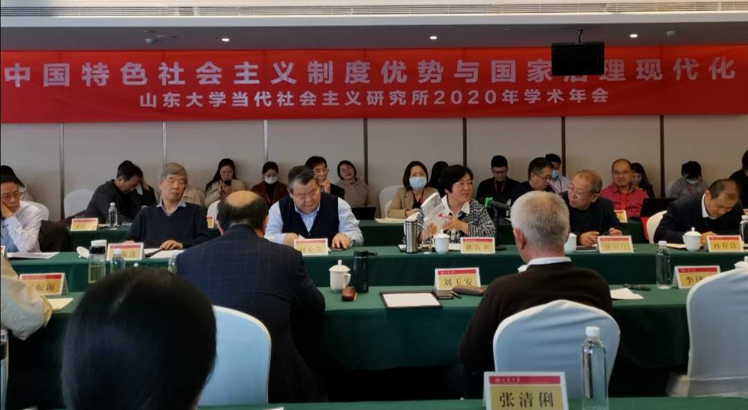 11月7日,由山东大学当代社会主义研究所主办的“中国特色社会主义制度优势与国家治理现代化”学术年会在济南召开,来自中共中央对外联络部、中共中央党校(国家行政学院)、中央党史和文献研究院、中国社会科学院、北京大学、中国人民大学、中国社会科学院大学、复旦大学、华中师范大学、郑州大学等国内高校和科研院所的100余位专家、学者参加会议,山东大学博士生导师、当代社会主义研究所所长崔桂田教授主持开幕式。BEAT365官网马克思主义研究中心主任、国家二级教授陈海燕参加会议并以“世界‘新社会主义’思潮与科学社会主义的新发展”为题作主题发言,在会上引起积极反响。