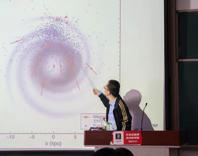 报告开始,仝号教授向在座同学提问了“多少天文学家获得过诺贝尔文学奖”等几个小问题,由此引出了本次报告的主题“奇妙的脉冲星”。仝号博士围绕“什么是脉冲星,它为什么很奇妙”展开了本次报告,从脉冲星的历史到脉冲星的观测,再到脉冲星的应用,他运用自己渊博的学科知识和非凡的物理学素养循循善诱,对问题进行了详细而又独到的阐述。同学们认真听讲,并记录报告内容,展现了物电学子对真知的渴望和热爱探索的优良风貌。报告接近尾声,仝号教授带领大家对本次报告的问题进行了串讲,并耐心地解答了同学们的问题。报告最后,刘志娥对本次报告进行了总结,表示本次报告表明了天体物理在大学物理中的重要性,使同学们对天体物理有了更深的理解。