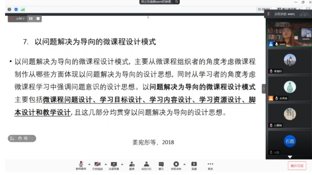 王雪梅教授依据教育部高校发展战略相关文件,以新文科建设、一流课程和一流专业申报、课程思政等问题为切入点,详细介绍了新文科与新基建的时代背景和基本内涵。随后从课程与课程设计、课程设计模式的有关理论出发,结合课程设计具体案例,分析了疫情冲击后课程教学所表现出的新常态并分享了其对课程建设的见解。