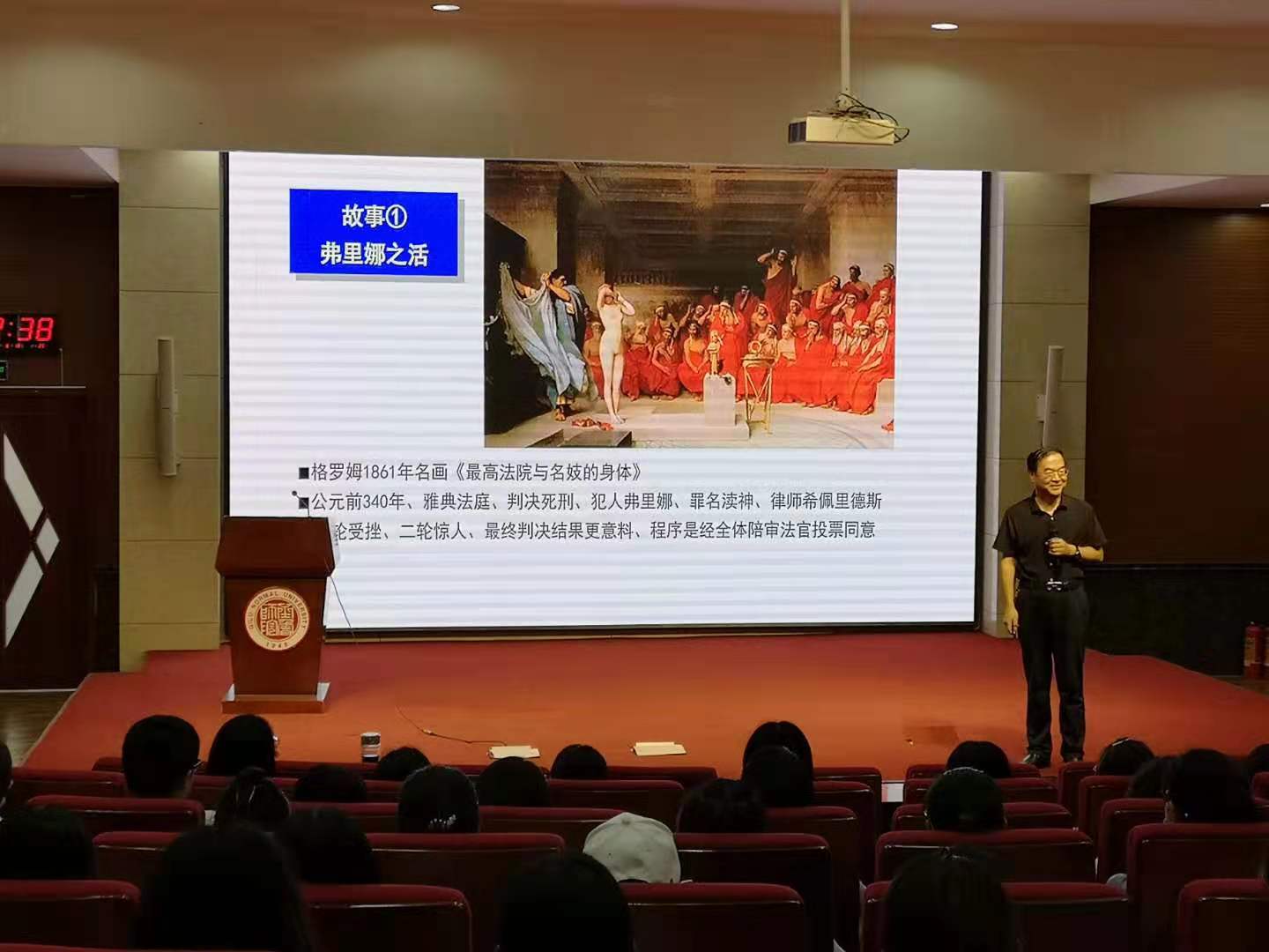 在观摩课结束后,刘庆亮以自己多年的教学经验为例,作了《高质量历史课堂教学的四大支柱》的学术报告,为同学们今后的学习和就业提供了极具远见的指导。他从“教学目标、情境创设、专业积累”等方面入手,辅以中学历史课堂教学的实例,向同学们传授历史教学的方法。刘庆亮特别强调历史师范生要通过读书积累的方式来提升自我境界,从而更得心应手地进行创新式的历史教学设计,并重点阐述了历史教学创新的内在要求,并通过典型案例启发了同学们的教学创新意识。