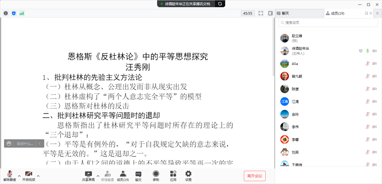 “青马论坛”线上研讨恩格斯《反杜林论》中的平等思想