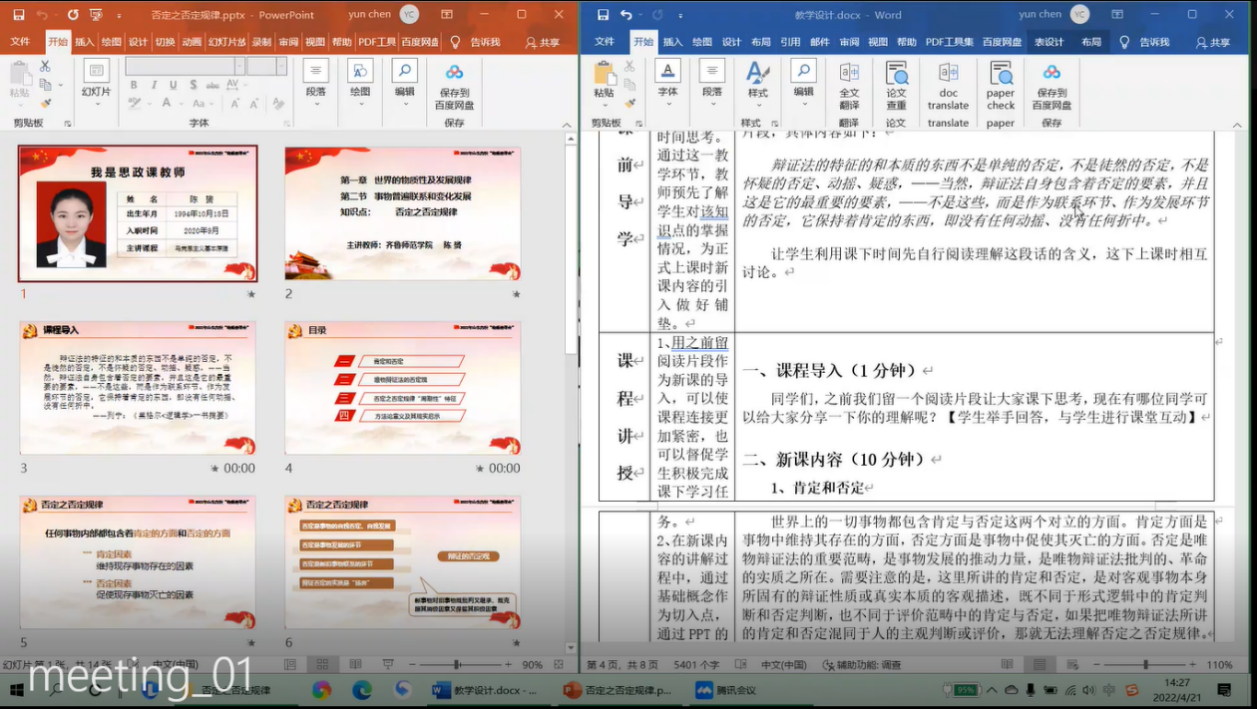 马克思主义学院副院长刘金玲教授向与会教师传达山东高校思想政治理论课“萌新磨课会”活动实施方案及学院赛事组织规划。学院两位青年老师陈赟和刘亚新先后展示参赛作品,分享课堂教学设计方案。两位教师教龄两年,积极响应学院号召,踊跃报名参加“萌新磨课会”比赛,认真备赛,以本次备课会为契机,通过线上和线下共同磨课、同台展示的形式,汇报参赛材料、分享心得感悟、提出问题困惑。