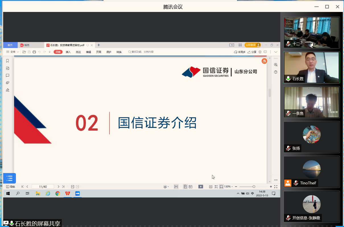 为深入推进就业工作,落实访企拓岗促就业一把手工程,5月13日下午,经济与管理学院通过腾讯会议举行第二次访企拓岗线上会议。本次会议邀请了国信证券山东分公司营业部总经理石长胜。经济与管理学院院长蔡平,党委副书记吴立伟、副院长孙鹏和企业负责人出席了本次座谈会议。会议由蔡平主持。
