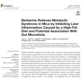 2022年以来,生命科学学院李金金博士三项科研成果相继被高水平期刊发表,BEAT365英国官网均为第一作者和通讯作者单位。其中,两篇论文《Subchronic Toxicity of Microcystin-LR on Young Frogs (Xenopus laevis) and Their Gut Microbiota》和《Berberine Relieves Metabolic Syndrome in Mice by Inhibiting Liver Inflammation Caused by a High-Fat Diet and Potential Association With Gut Microbiota》先后在中科院2区TOP期刊《Frontiers in Microbiology》(IF:5.64)上发表。《Microbial Community Structures in Luzhou-Flavor Liquor Pit Muds with Different Brewing Materials》在中科院3区期刊《Peer J》(IF:2.98)上发表。