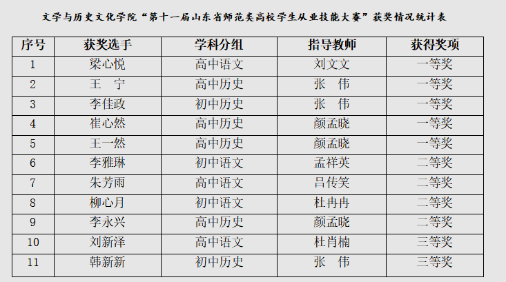喜报!文学与历史文化学院在第十一届山东省师范生从业技能大赛再获佳绩