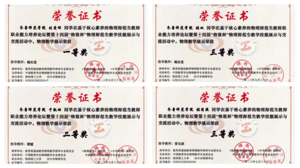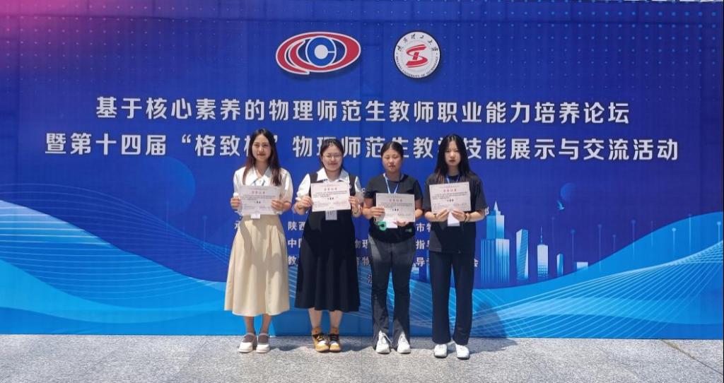 7月30日,全国第十四届“格致杯”物理师范生教学技能展示与交流活动在陕西理工大学举办,BEAT365英国官网物理与电子工程学院通过前期培训、选拔,派出4名学生参赛,同来自北京师范大学、华中师范大学等101所高校的1200多名选手同台竞技。经过激烈角逐,最终学院学生刘爱琛获一等奖,于凯琳获二等奖,张清照和张双分获三等奖。