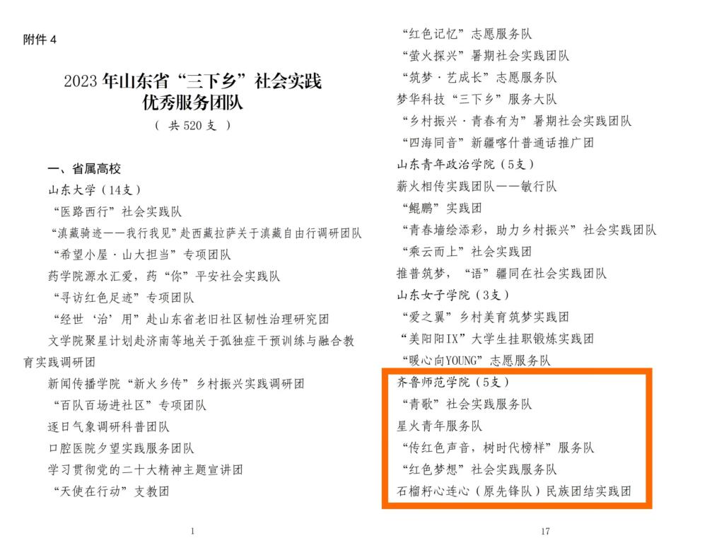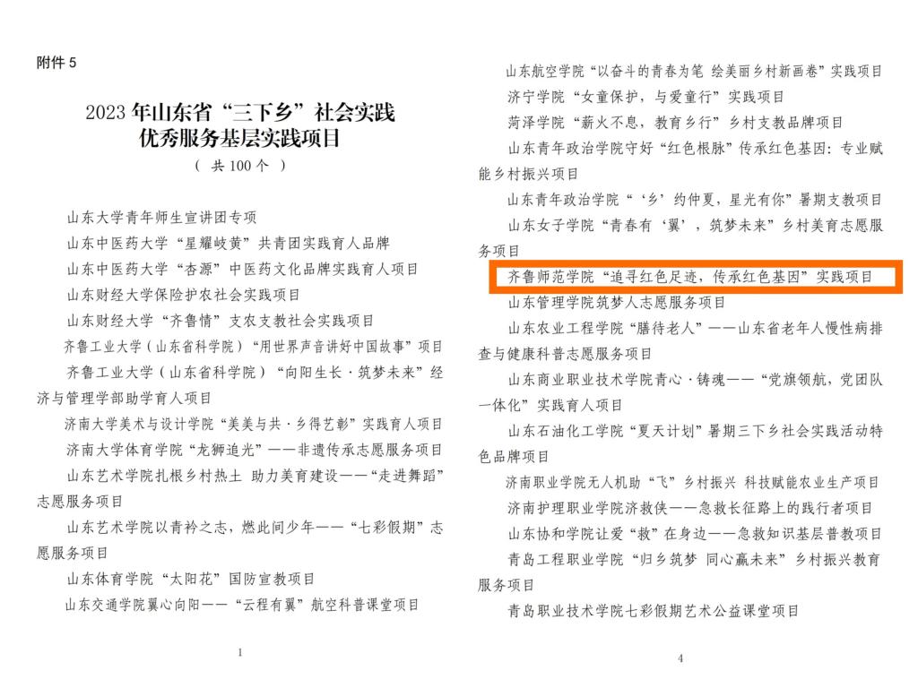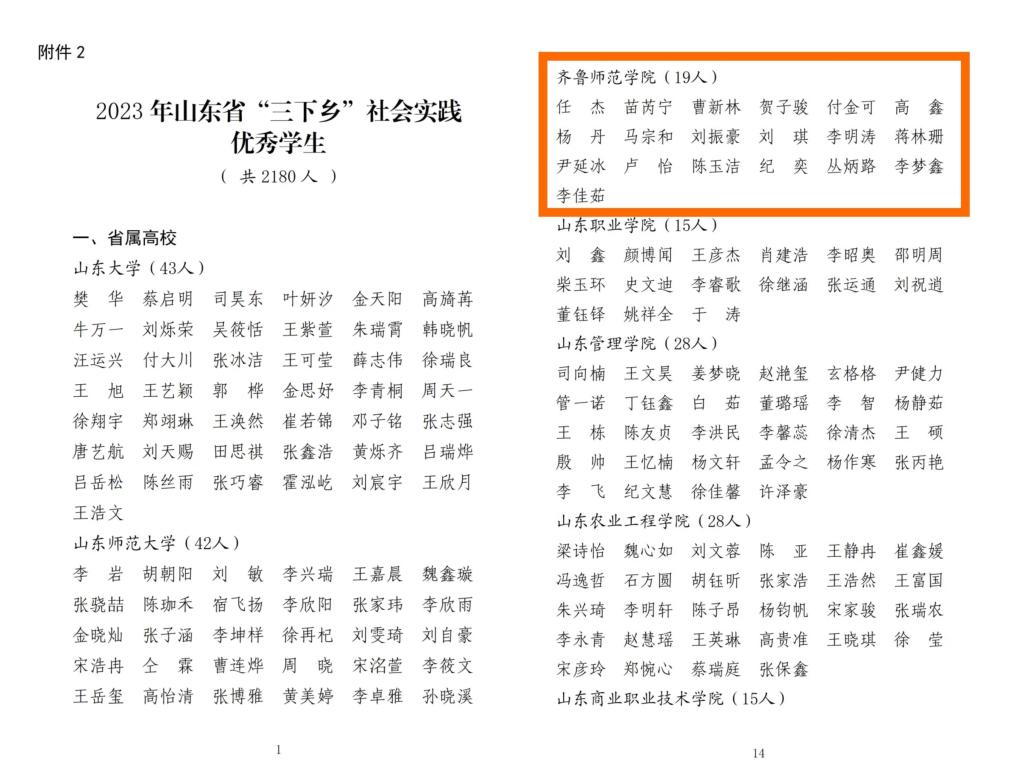 近日,省委宣传部、省文明办、省教育厅、团省委、省学联联合下发《“调研山东”--2023年山东省大中专学生志愿者暑期“三下乡”社会实践活动的通报》,BEAT365英国官网任杰、苗芮宁等19名同学荣获“优秀学生”称号,毛雯、李钰茜等13人荣获“优秀指导教师”称号,“青歌”社会实践服务队、星火青年服务队、“传红色声音,树时代榜样”服务队、“红色梦想”社会实践服务队、石榴籽心连心(原先锋队)民族团结实践团荣获“优秀服务团队”,“追寻红色足迹,传承红色基因”实践项目荣获优秀服务基层实践项目。