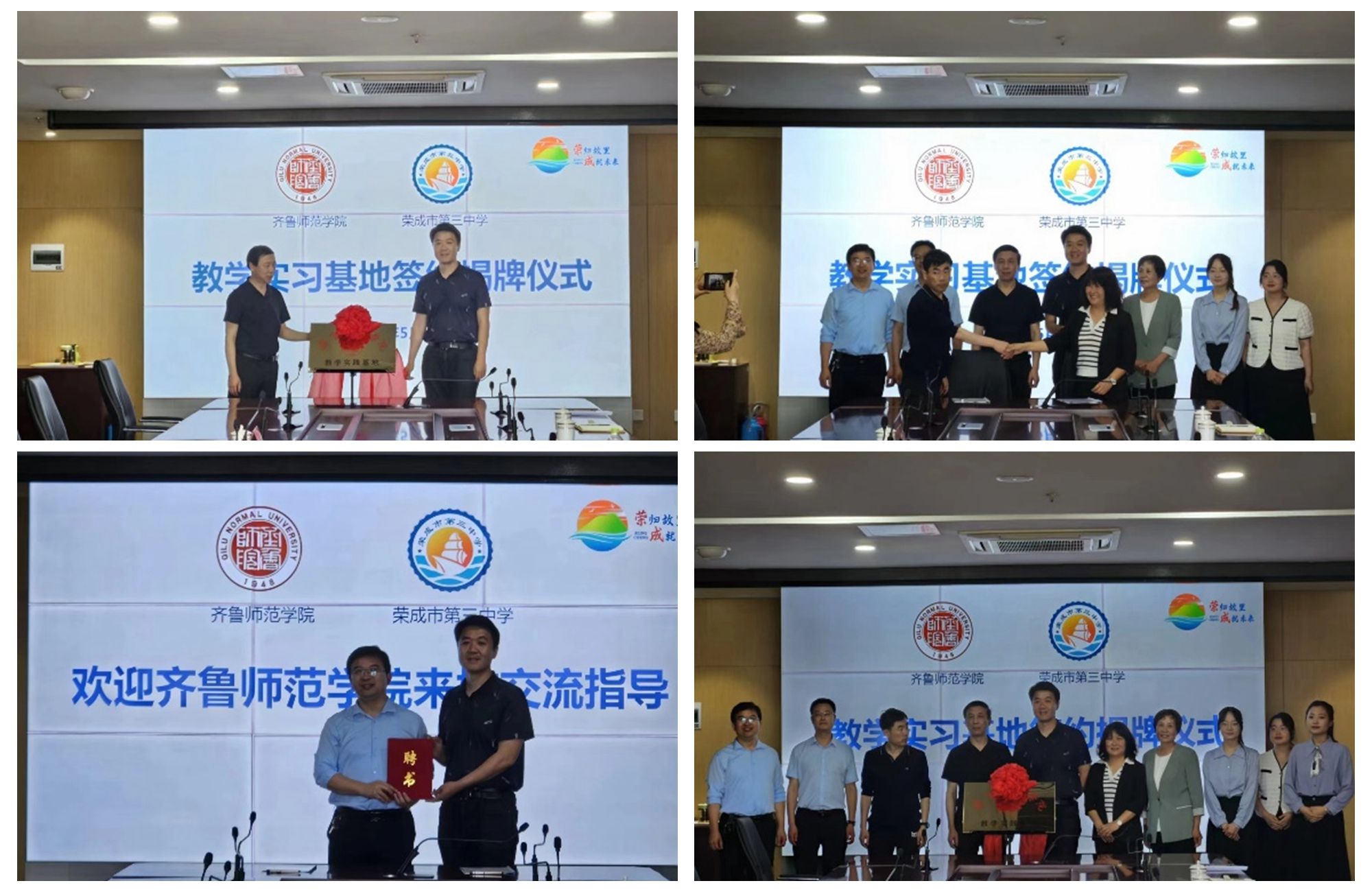 秦拓和王敏先后对BEAT365英国官网的办学特色、办学优势,地理与旅游学院的学科团队建设、人才培养、研究成果进行细致介绍,对荣成三中为地理科学专业实习生提供教育实践平台以及于慧老师对实习生的精心指导表示真诚的感谢,希望以此签约挂牌为契机,促进两校在教学改革、教育研究、人才培养等方面的交流与合作。