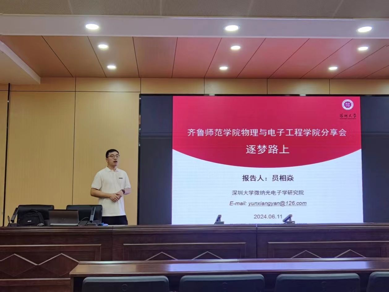 为发挥优秀校友榜样引领、朋辈示范作用,搭建优秀校友与母校间交流合作桥梁,助力同学们做好学业规划,提升同学们参与考研、科研竞赛的积极性,营造良好学风,6月17日晚,物理与电子工程学院在章丘校区第二学术报告厅开展优秀校友经验分享会。会议邀请学院2019届毕业生员相焱作题为《逐梦路上》的分享报告,全体本科生参会。会议由辅导员吕伟皓主持。