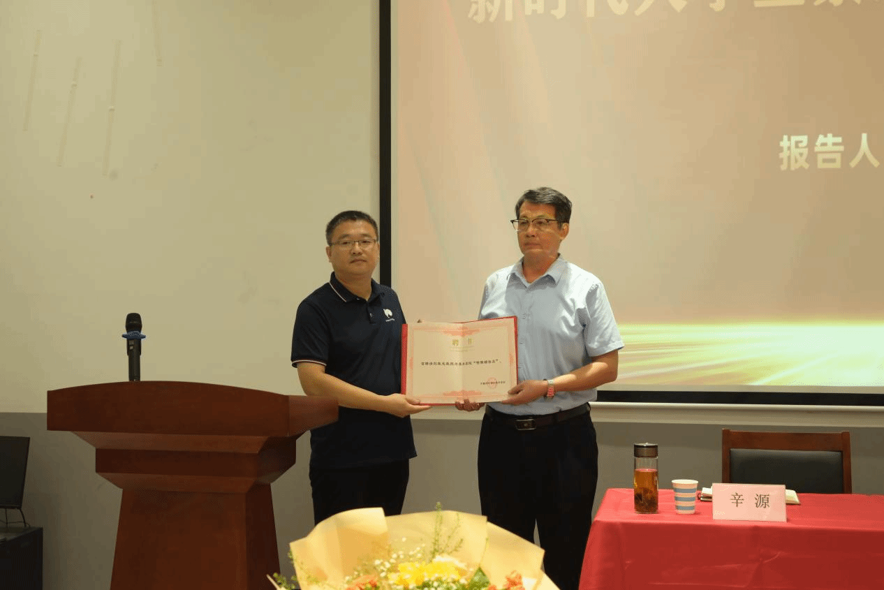 在“开学第一课”正式讲授前,辛源为刘振光教授颁发美术学院“特聘辅导员”聘书。美术学院将依托“特聘辅导员”丰富的学识和经验,指导和帮助学团进一步改进工作,加强辅导员队伍和学生干部队伍建设,提升学团工作的规范化、精准化、科学化和实效化,提升学生教育管理质量。