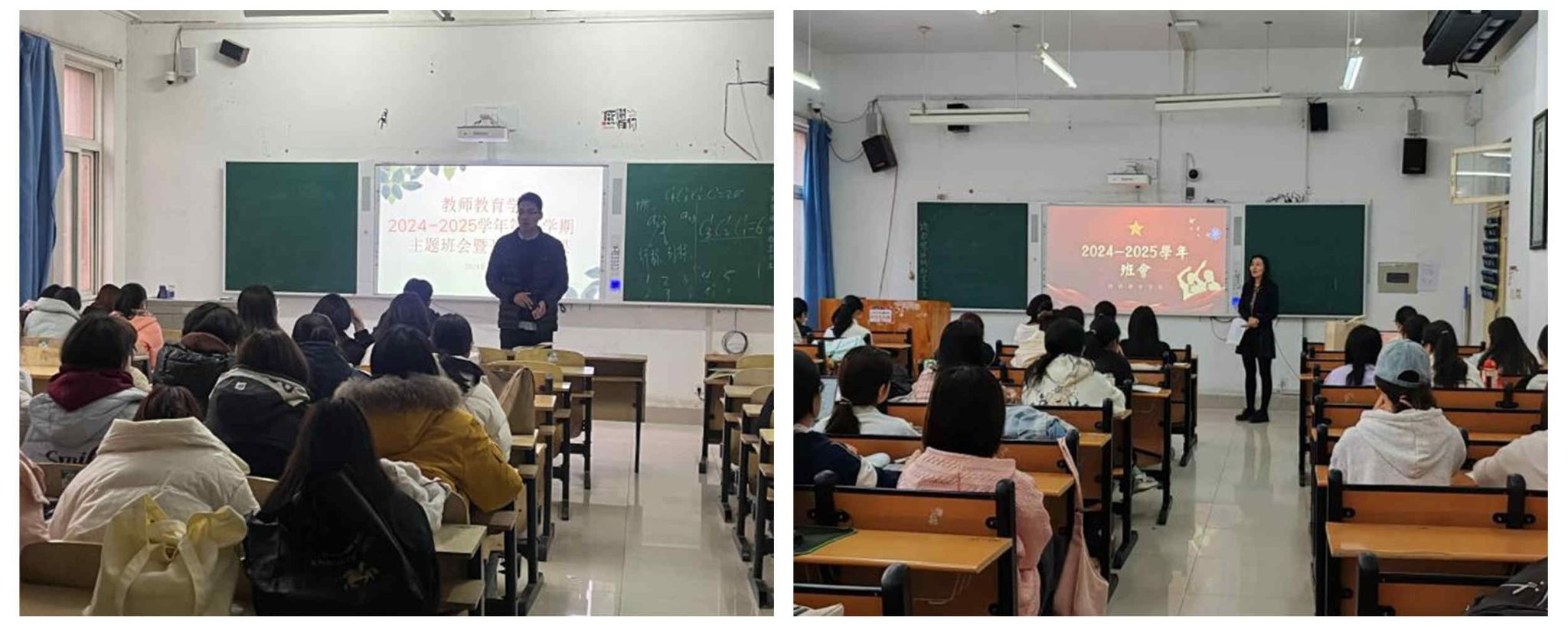 在文明教育的全面推进中,教师教育学院秉持着“无死角、全覆盖”的理念,各班辅导员老师认真开展“文明守纪”系列主题班会,如,有的以“学而时习之,不亦乐乎”为题强调上课纪律和学习规范,引导同学们在上课时做到专心致志、全神贯注;有的以“君子慎独,不欺暗室”为重点,告诫同学们在宿舍中应慎独自律,遵守宿舍管理规定,安全用电,防止火灾;有的以“文质彬彬,然后君子”为题,播放《校风校纪》《大学生行为规范》等教育视频,将文明与不文明行为鲜明对照,引导学生提高道德水准和文明素养,为后续活动的开展奠定了深刻的思想基础。