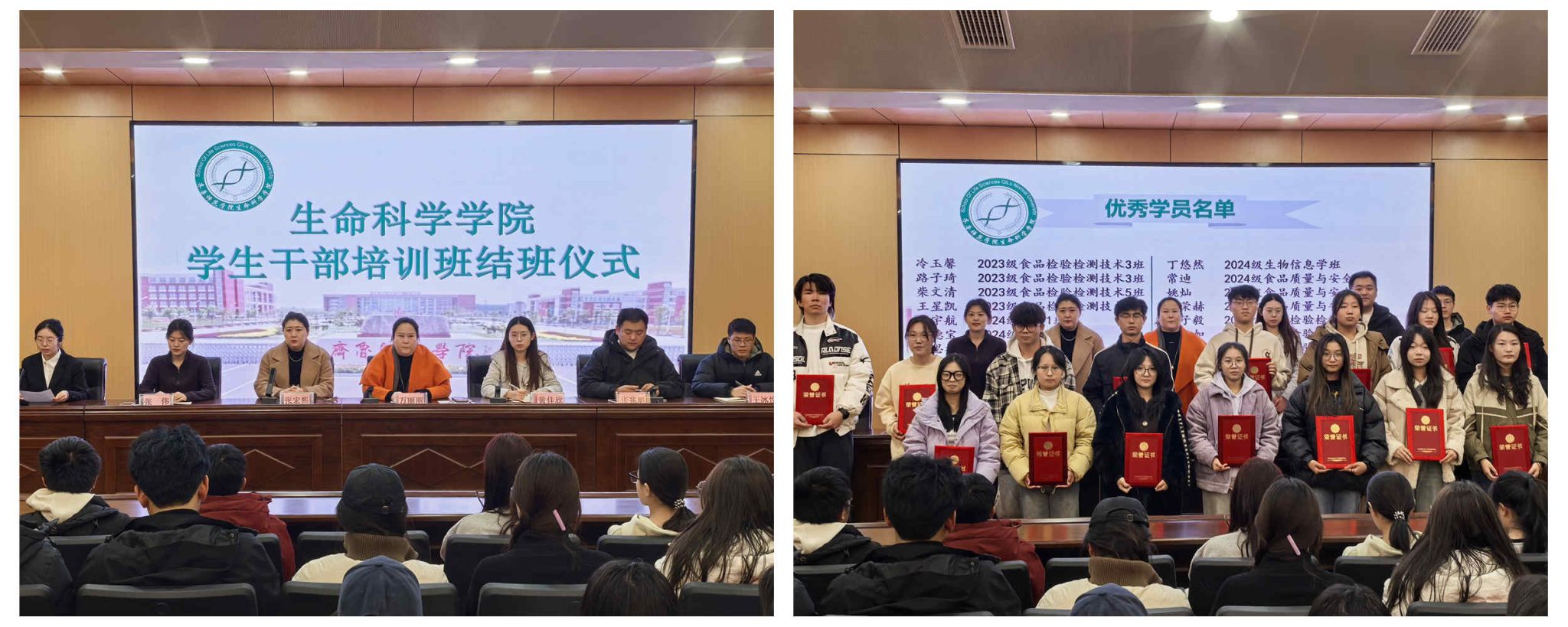学院表彰先进,激励学生干部奋发向上、积极进取。在学生干部结班仪式上为在此次培训中表现突出的先进个人颁发了“优秀学员”荣誉证书,以榜样力量为示范,引导学生形成比学赶帮超的良好氛围,提升思想觉悟,牢记服务宗旨,密切联系广大同学,在工作中更加注重实干、担当与奉献,更好地发挥好联系同学的桥梁与纽带作用。