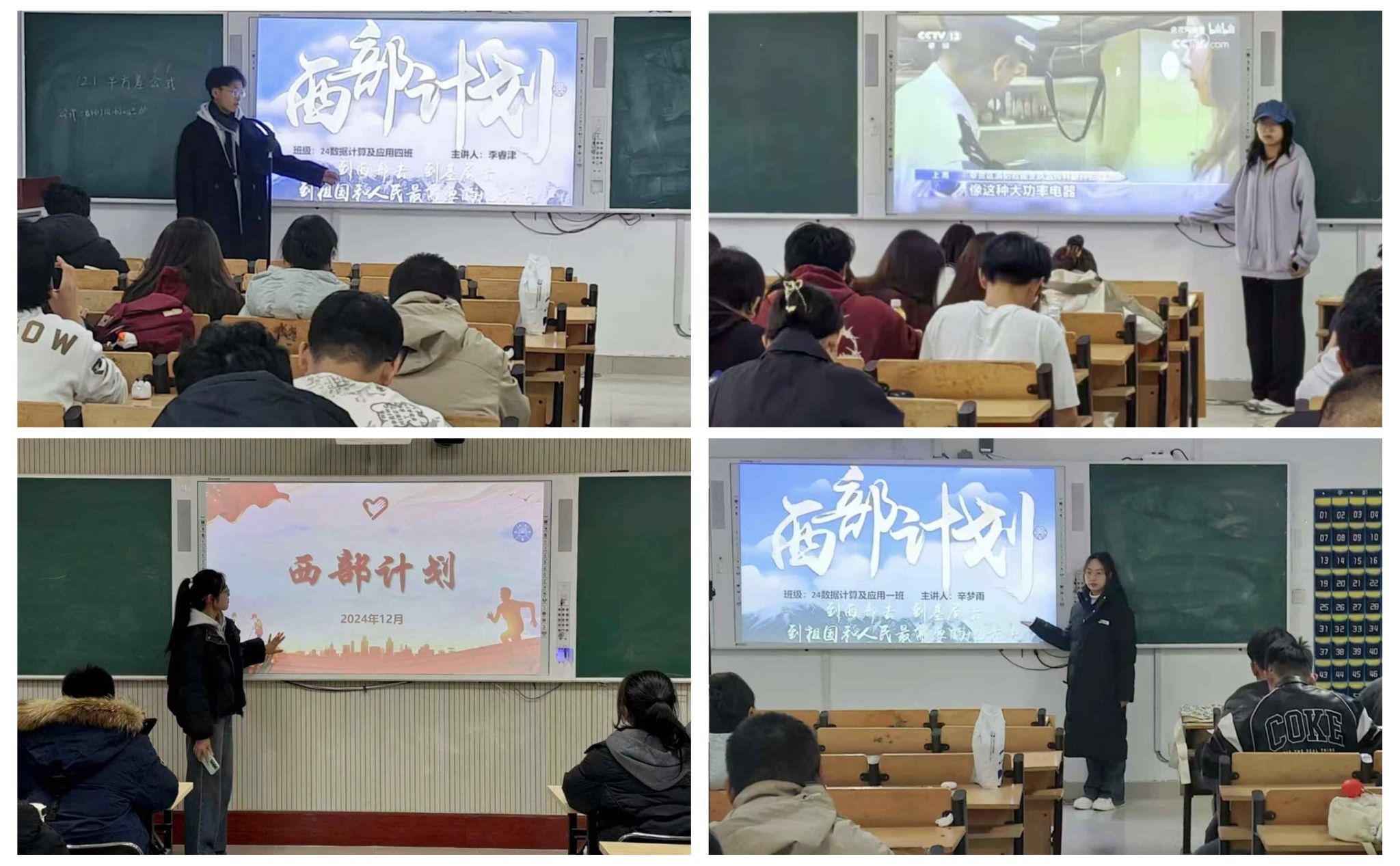 为引导和鼓励更多学生到西部去、到基层去、到祖国和人民最需要的地方去,以青春为火种点燃西部奋进之光,数学学院于12月15日至22日开展“青春无悔,逐梦西行”西部计划宣传工作。通过主题班会、座谈会以及微视频宣传等多种形式解读西部计划的内涵与意义,汇聚莘莘学子投身西部建设、奉献青春力量的磅礴伟力。