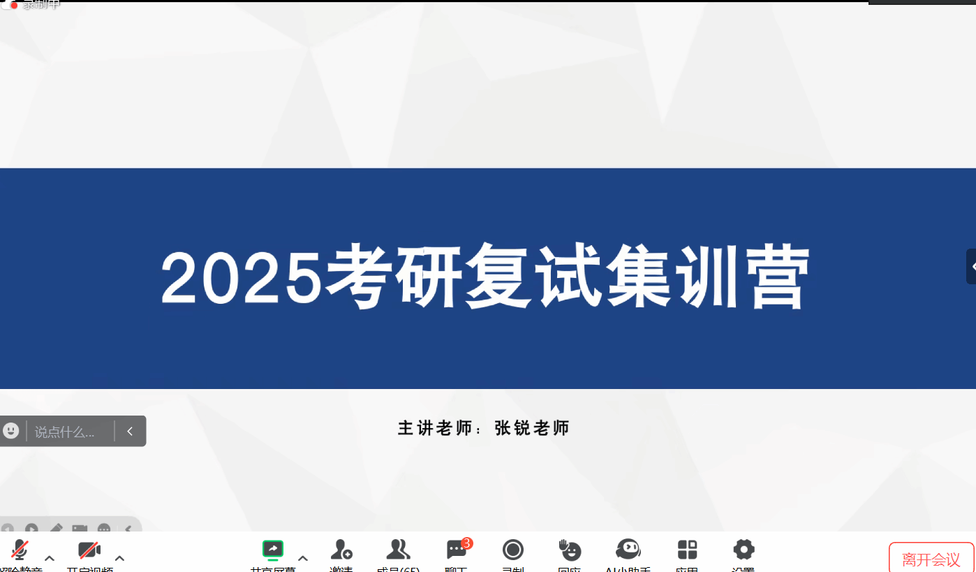 复试指导环节,张锐对复试各个模块及流程作详细介绍;针对不同模块从复试成绩占比、评分标准进行讲解;为考研学子制定复习规划;针对如何联系导师及注意事项等问题给同学重点予以指导。