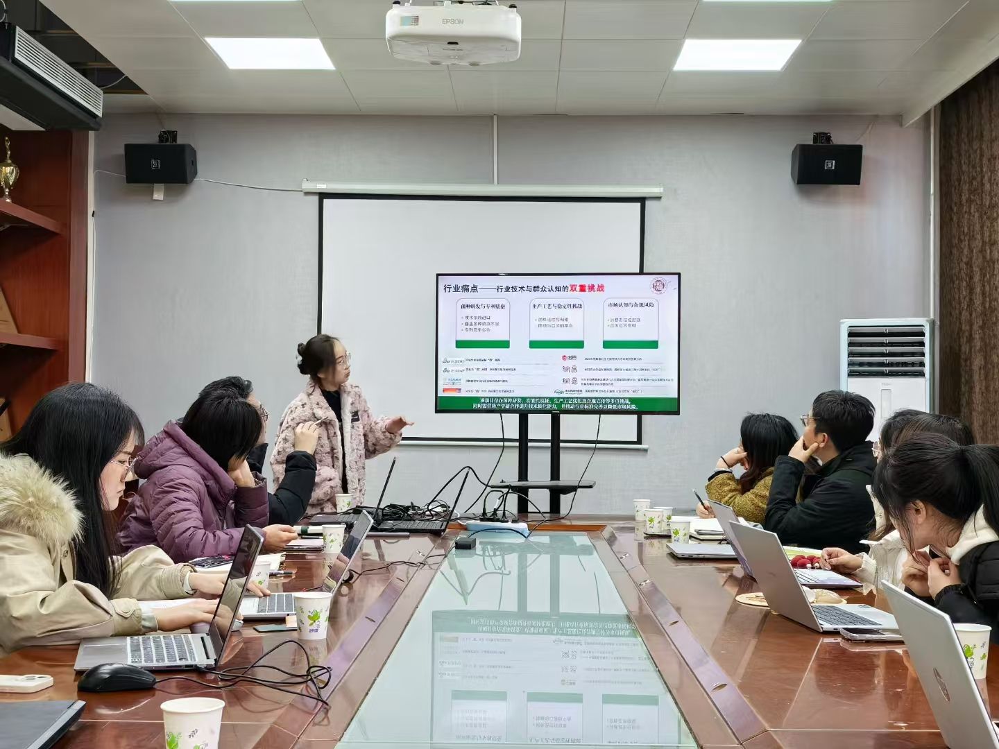 培训中,各项目负责人依次进行项目路演展示。朱俊科、朱雨昕两位主讲导师围绕大赛主题,立足评审规则、大赛宗旨和市场需求解析备赛策略,从项目的选题精准性、行业痛点、技术难点、产品定位、市场可行性分析、财务数据、PPT展示细节等方面进行专业性指导,针对路演逻辑架构、特色凝练等关键环节给出优化建议。在作品打磨过程中主讲导师帮助各团队答疑解惑,理清思路,查找不足,优化调整,为提升项目质量、高效备赛提供了有效支持。