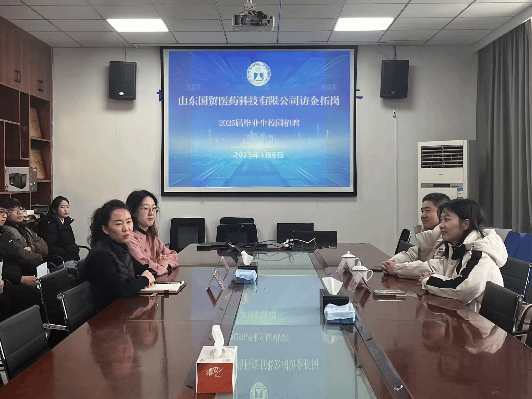 为实现毕业生高质量充分就业,化学与化工学院坚持OBE教育理念,开展“职达未来”就业促进行动,通过强化就业服务、畅通求职招聘渠道、提高对接匹配效率等多种举措,全力以赴做好2025届毕业生就业工作。3月6日,学院在2号实验楼B310会议室举行专场招聘宣讲,学院副院长张旭雪、辅导员董坤,山东国茂医药科技有限公司(上海理想制药有限公司青岛研发中心)董事长董桂秀、总经理盛彦君出席,2025届毕业生参加。