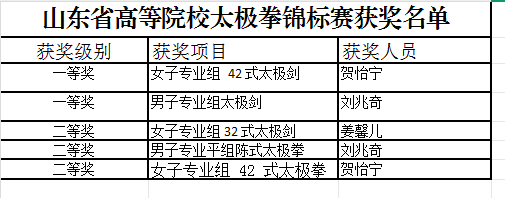学校在山东省高等院校太极拳锦标赛中获佳绩