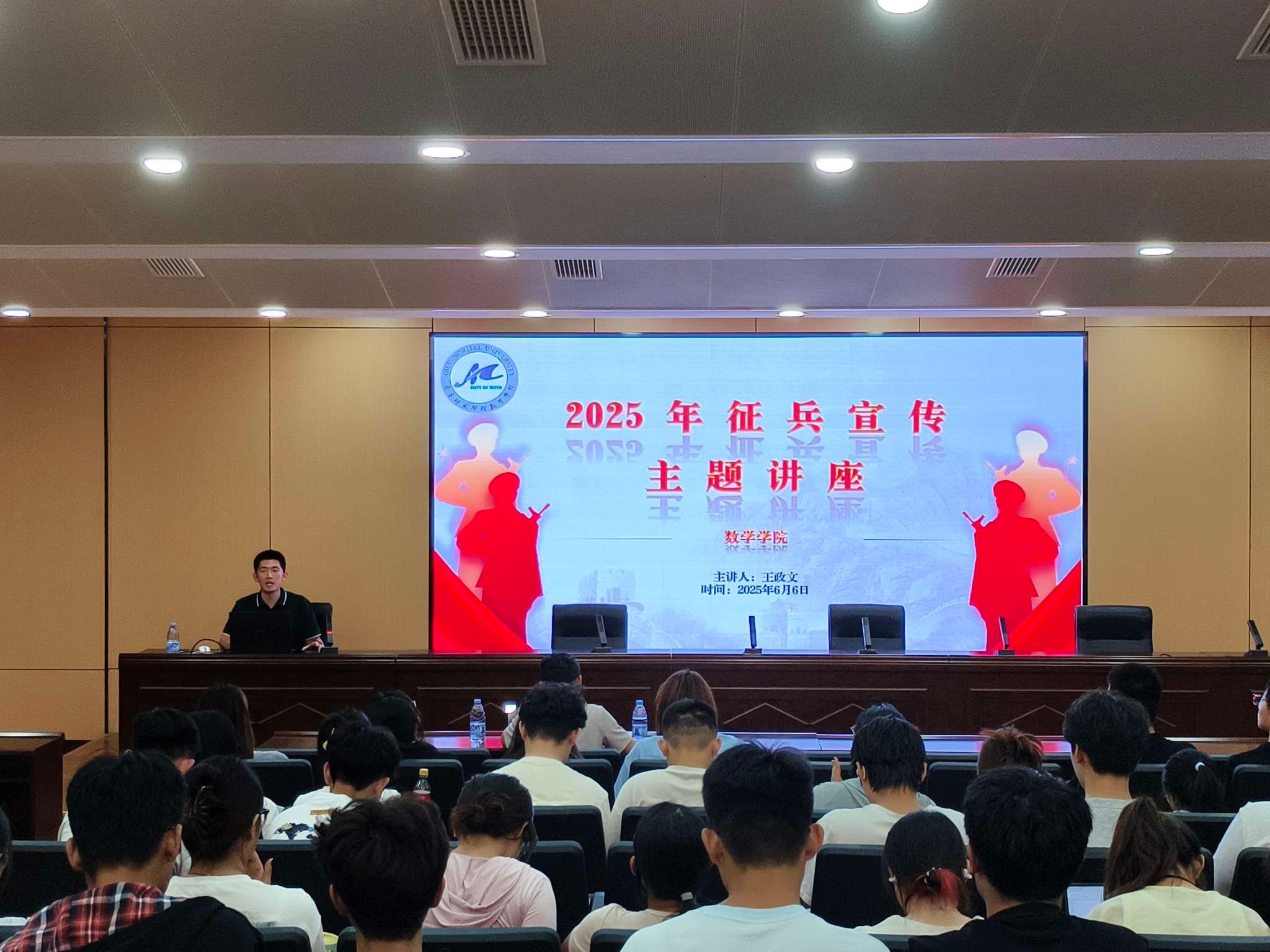 6月6日,数学学院于第二学术报告厅举办征兵就业宣讲会,将征兵宣传与就业指导深度融合,为学子拓宽就业视野、规划多元发展路径。学院辅导员王政文与战旗国防教育讲师团杜守臣担任主讲,2025届毕业生及在校生踊跃参与。