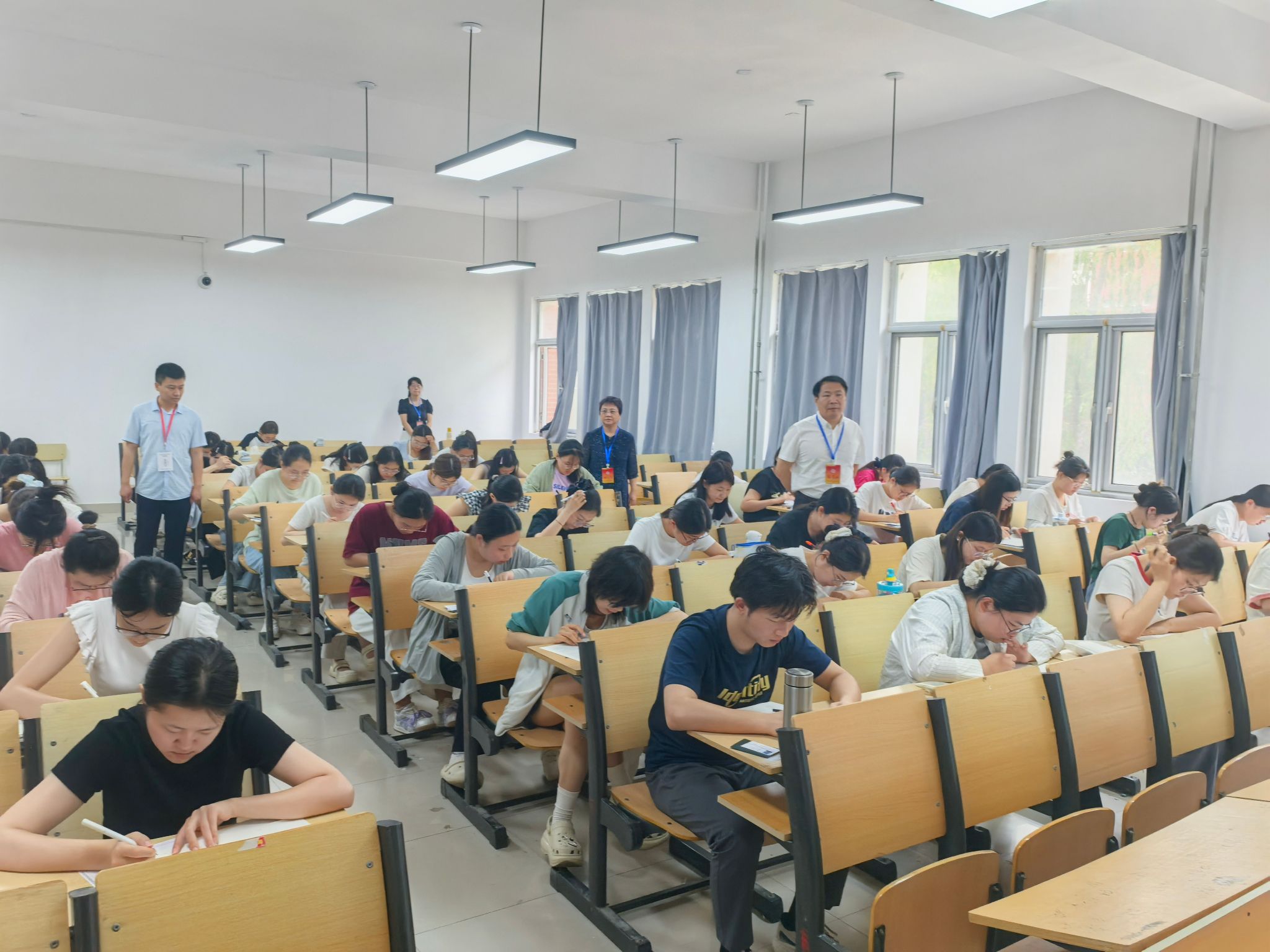 考试期间,学院院长宋秀葵、副院长谢士金对考场进行巡视指导。全国英语专业四级考试督察员与学院考务工作人员对各考场进行了全程督导检查。各考场监考教师严格执行考试纪律,认真履行监考职责。考生自觉遵守考场规则,展现出良好的考风考纪。整个考试过程秩序井然,考试工作顺利完成。