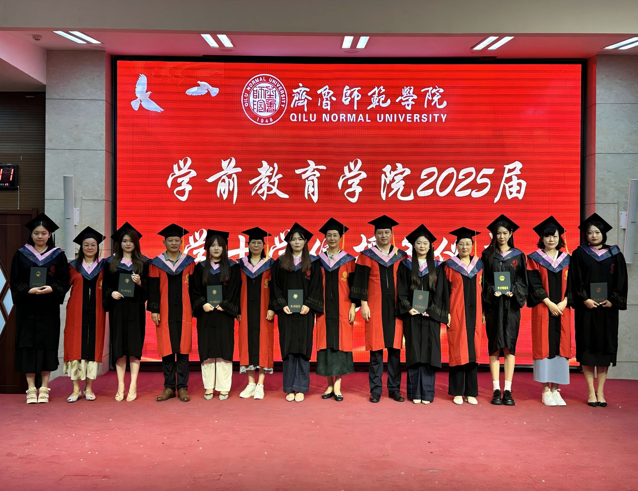 仪式结束后,同学们纷纷与导师们拍照留念,温馨的场面令人动容。他们也将带着师长的嘱托、同窗的祝福,秉承“博学明道 崇德象贤”的校训和“明德仁爱,行端表正”的院训,迈向“躬耕教坛、强国有我”的壮阔征程,书写个人华彩篇章!