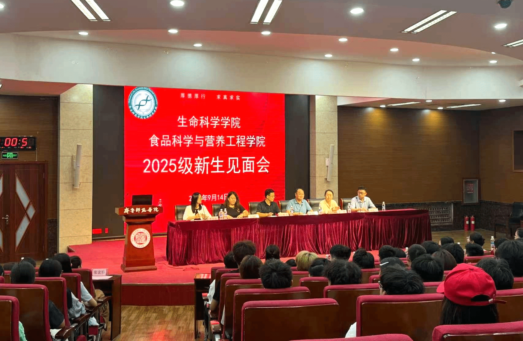 为引导2025级新生筑牢信仰之基、把稳思想之舵,以党建引领明确成长方向,以铸魂育人开启大学新程,9月14日下午5点,生命科学学院在章丘校区第一学术报告厅举行了2025级新生见面会。会议由学院党委副书记万丽丽主持,学院领导班子成员、2025级新生班主任、辅导员及全体2025级新生参加会议。