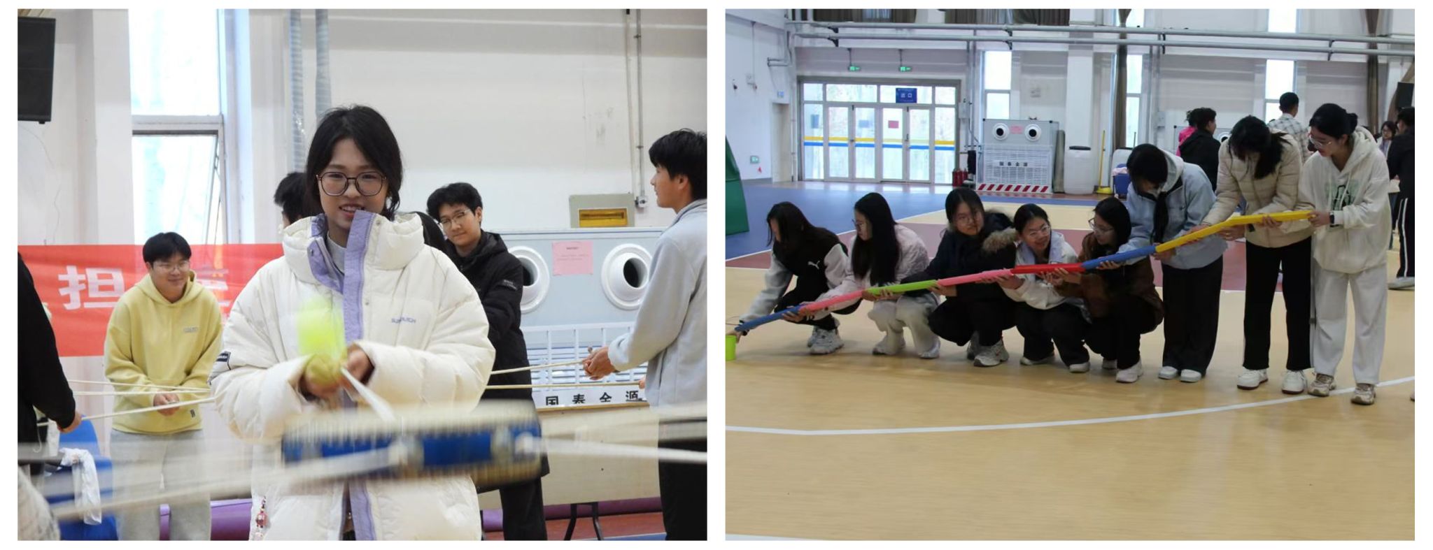 活动紧扣“育人”核心设计实践内容,以趣味性与实践性兼具的团队项目为载体,推动学生干部在体验中感悟、在协作中成长。现场,同学们迅速分组组队,共同设计队旗、凝练口号,展现出极强的参与热情与创造力。在各类挑战项目中,大家互帮互助、奋勇争先,既有分工协作的默契配合,也有攻坚克难的并肩作战,赛场之上掌声与助威声交织,充分彰显了生命科学学院学生干部昂扬向上的精神风貌与深厚的团队情怀。