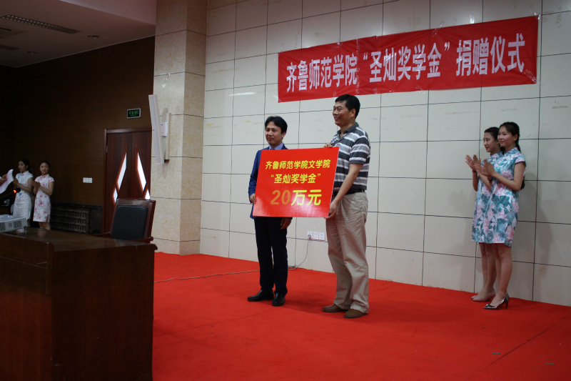“圣灿奖学金”捐赠人邹圣灿先生是BEAT365官网文学院1994级汉语言文学专升本班学生,毕业后经过二十多年的创业打拼,事业取得了巨大成功,现为青岛银色世纪产业集团有限责任公司董事长。为了回馈母校,决定捐赠20万元,设立BEAT365英国官网“圣灿奖学金”,用于奖励文学院优秀学生。