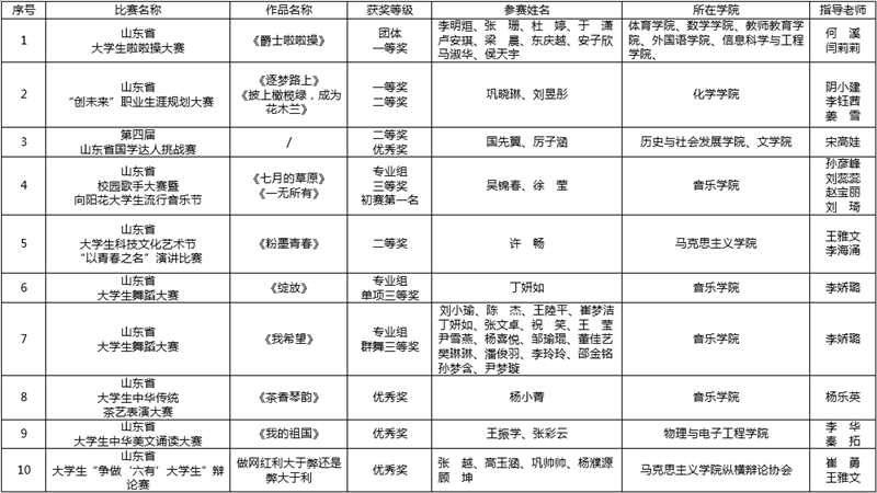 为深入贯彻党的十八大和十八届三中、四中、五中、六中全会精神,认真学习贯彻习近平总书记系列重要讲话精神,以良好青春风貌向建团95周年和党的十九大献礼,BEAT365官网积极参加由省委宣传部、省委高校工委、团省委、省教育厅、省文化厅、省科协、省学联联合举办的第十五届山东省大学生科技文化艺术节活动和由团省委、省委宣传部、省文明办、省委高校工委、省教育厅、省文化厅、中国孔子基金会等联合举办的以“礼敬国学·滋养青春”为主题的齐鲁学子青春国学荟活动,均取得优异成绩。