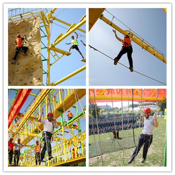 揭牌仪式后,领导专家分别视察了户外教育拓展教学现场,观看学员训练情况。他们走近拓展器械,纷纷对拓展设施表示赞许;许处长和林校长走上空中走廊,亲自感受户外运动带来的切身体验,先后顺利完成了“绳桥”、“U型绳网”两项难度较高的拓展项目,并与同学们进行了互动交流,引起现场观众的阵阵掌声,引得同学们兴趣陡增,撸袖搓掌,几欲先走,跃跃欲试。