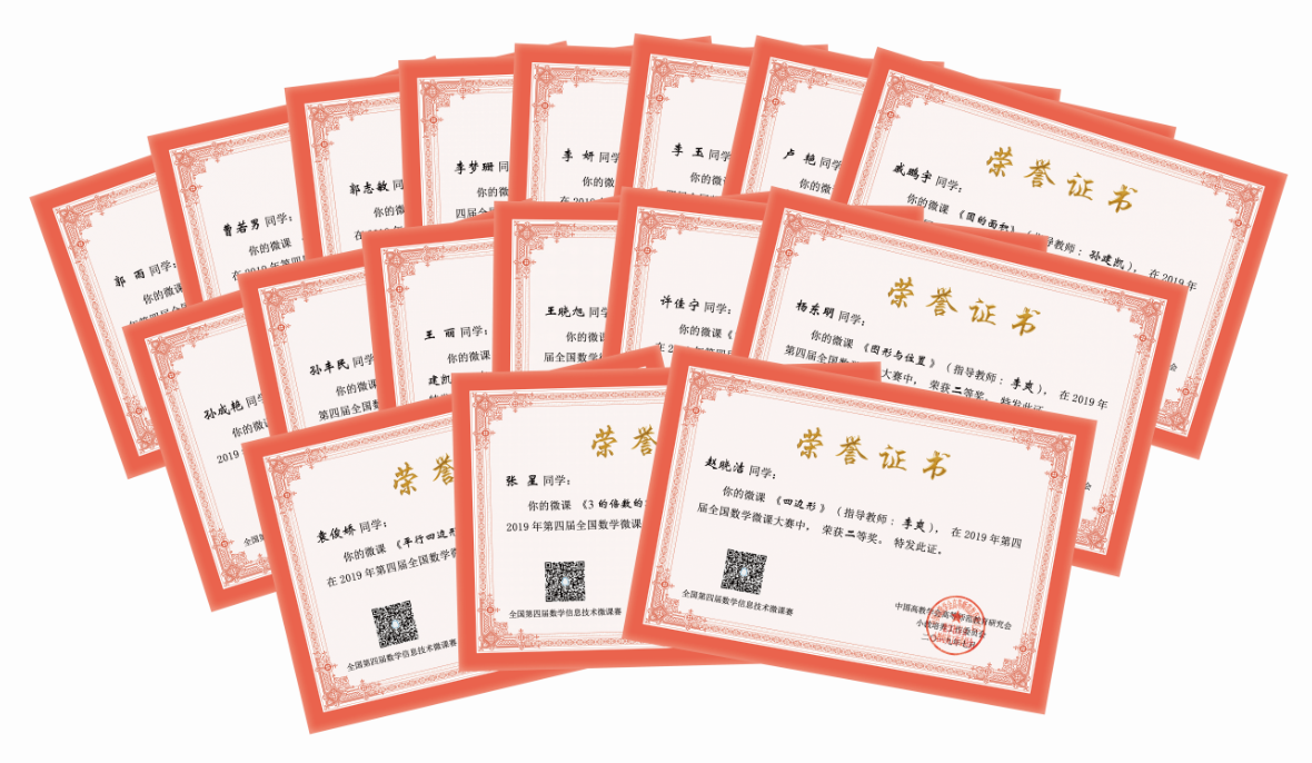 近日,2019年第四届全国数学微课大赛评比结果公布,教师教育学院李淼等数十名学生参加比赛,并取得优异成绩。