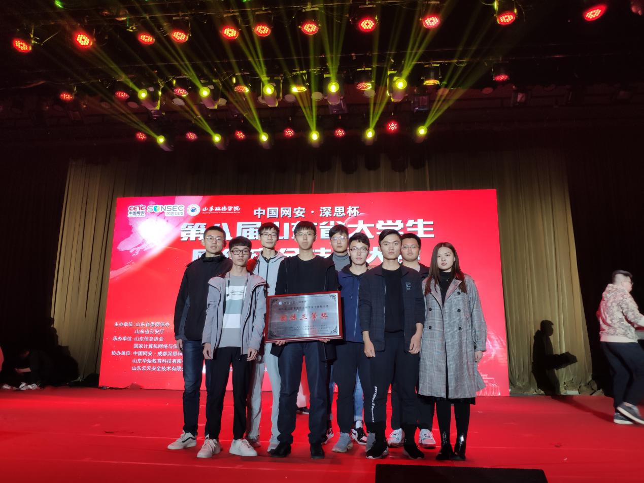 学院领导一直重视培养学生的创新创造能力,关注学生就业。积极准备本次大赛,在信息科学与工程学院的网络安全社团中,选拔优秀的参赛选手。安排专业教师进行指导并组织参加团队进行集中的培训和模拟练习,全面提升参赛选手的实战能力和应变能力。在比赛中,我院张津维、卞普,胡联阔等七名同学组成的团队积极协作,最终在46所高校中脱颖而出,荣获团体三等奖的好成绩。