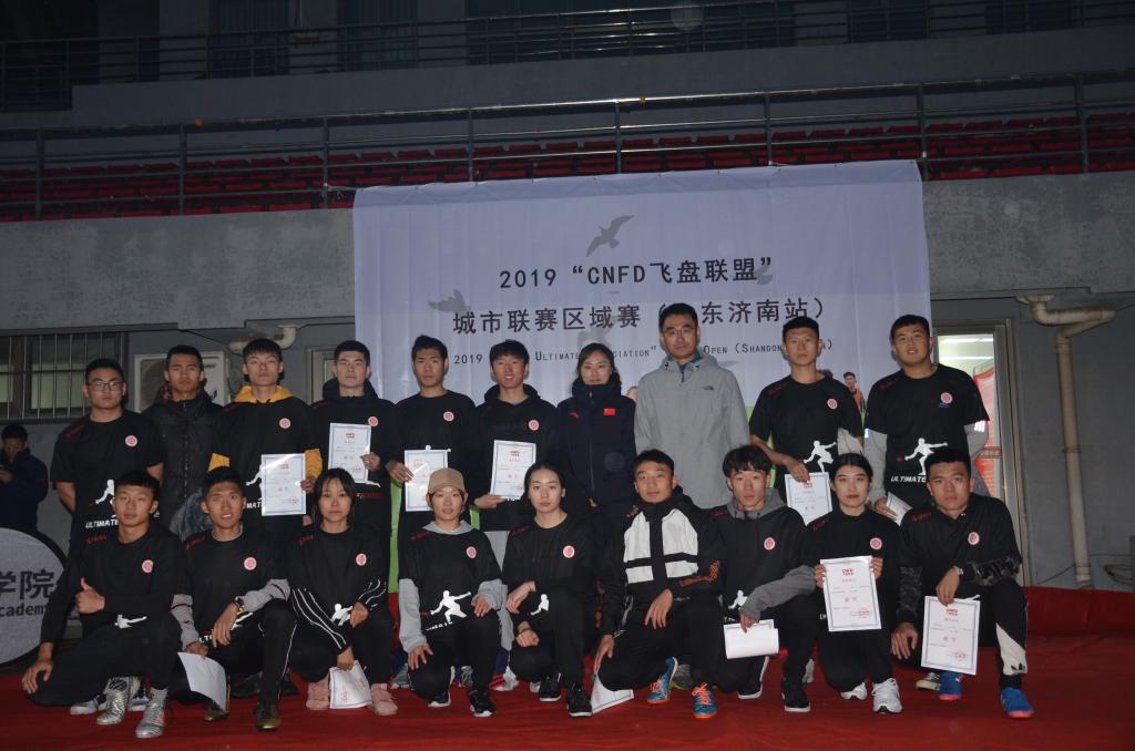 极限飞盘城市联赛区域赛(山东济南站)圆满落下帷幕,通过一天7轮比赛的激烈角逐,我们BEAT365英国官网X—ray队斩获亚军头衔。X—ray队由体育学院17名同学组成,组队时间不长,同学们利用课余时间加班加点训练。