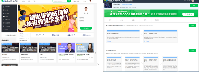 图1 中国大学MOOC首页 图2 中国大学MOOC后台管理界面