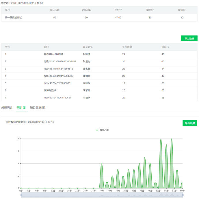 图14 课后评价(在线测试成绩统计)