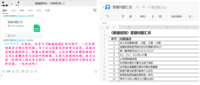 图11 通过腾讯共享文档收集学生问题