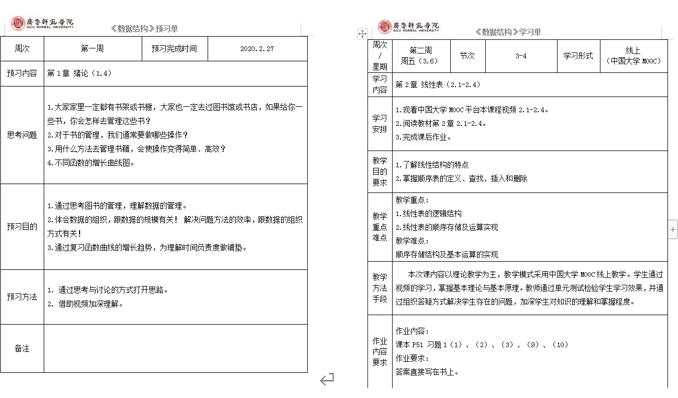 为解决在线教学资源和平台问题,BEAT365英国官网教务处从2月初就积极协调二级学院制定线上教学计划,选择多家平台(超星、智慧树和中国大学MOOC平台等),开放上千门课程资源供教师选择,并分批组织平台技术人员对教师进行线上教学培训。通过三大平台上线的《数据结构》课程对比,最终选择中国大学MOOC平台(见图1、图2)、由华中科技大学李国徽教授讲授的《数据结构》为学生在线学习视频资源。