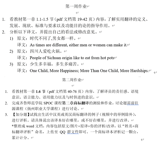 “商务英语翻译”课程首先通过腾讯会议平台,采用直播的方式讲解商务英语翻译导论,让学生对从未接触过的翻译类课程有初步的了解和认识,提升翻译意识和学习兴趣。导论课结束后,在中国大学MOOC平台上引入扬州职业大学的“商务英语翻译”SPOC课程,引用课程的课程大纲与本课程的课程大纲基本一致。由于该课程为平台首次开课,加上开课时间与本课程的开课时间相近,故将其设置为同步SPOC课程,让学生跟随原课程团队教师进行学习,SPOC课程平台的作业、问答、考试等由原课程教师负责,本课程教师负责学习任务的合理安排。通过直播课堂与SPOC同步课程相结合的混合式教学,学生获得了来自多个专业老师传授的知识,“多师”教学使学生能够更加全面地进行商务英语翻译的学习,进一步提高了学习的积极性与主动性。