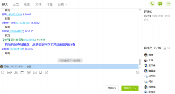 得益于平时对经世优学平台的熟练使用,对教学工作追求精益求精的老师们,又提出了更高的要求。由于网络授课不同于传统的课堂教学,老师无法和学生进行面对面的沟通,缺乏师生间的交流和互动,针对这些问题,老师们集思广益,采用QQ群内接龙签到+直播互动的方式,网络课堂氛围丝毫不输传统课堂,同学们积极参与,互动参与度和学习热情高涨,课下部分同学还有老师展开了激烈的讨论交流。