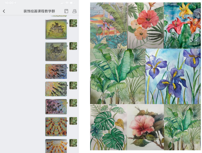 有些学生学习条件比较简陋,完全依靠网络线上的模式教学有一 定的弊端,为了弥补不足老师应当以身作则,老师与同学一起画装饰 画,老师与同学共同创作共同进步,目的是让学生更直观的学习也更 能理解绘画的步骤。老师示范创作对于绘画实践是非常重要的,包括 前期的短期作业练习目的是知识理论的消化吸收,为后期作业的创作铺平道路。学生是课程的主体,老师根据每一位学生的特点和长处帮 助学生设计绘画形式和语言,老师不能把自己的意识强加到学生身上, 要尊重他们的想象力和表现力。但是也要帮助学生少走弯路,有效的 实现自己的想法。根据学生的反馈意见,老师也会不断增加自己的知 识储备。