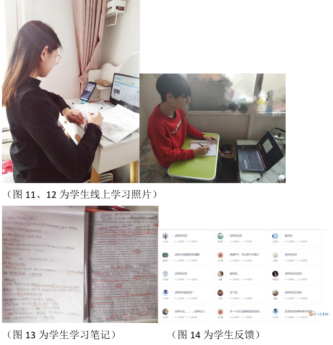 经过的几周的学习与探索《幼儿园课程》实现了“时间”与“空间”上的融合与拓展,在学生的反馈中不断调整教学(图 11、12、13、14)。除此之外,在课堂教学中与疫情之下国家强调的 生命安全教育、公德教育、心理健康教育、爱国教育等内容相结合,更倡导学生关注疫情期间,关注幼儿在家庭中课程的创设,丰富幼儿在疫情期间的活动形式,也是作为《幼儿园课程》在家庭中的延伸。