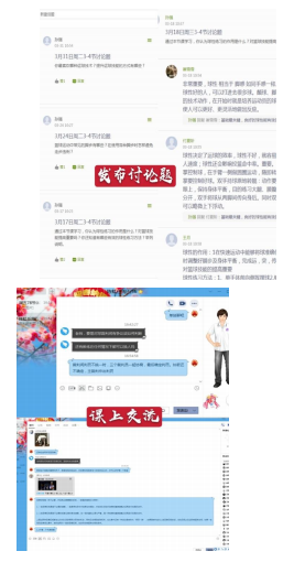 每节课前先是提前发布本节课的学习内容和任务,提前让学生知晓,做好上课准备;然后开始课堂点名,每节课课堂点名时间 10 分钟;课堂中与学生就不懂问题采用 QQ 形式积极交流,还针对本节课的内容设置相关讨论题,师生积极互动;最后总结本节课授课情况。