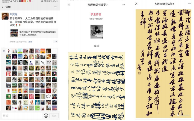 这是一个不平凡的学期,因为疫情,我们足不出户,但是疫情的严峻形势阻挡不了我们学习的步伐,停课不停学,美院在行动。在接到学院转发的《关于做好2019-2020学年度第二学期延期开学期间开展网络教学工作的预案通知》之后,迅速开始思考如何开展我的油画课的网络教学。按照省教育厅和学校“停课不停学”的工作部署,我认真备课,计划如何顺利并富有成效的完成疫情防控期间的上课任务,本着这个思路,我在教学方法上不断进行摸索。开学初完成了《行书临摹二》的教学,现在正在进行《草书临摹一》的教学。现对自己的授课体验进行总结: