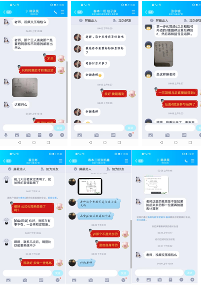 课后作业从多种参考书中选择多样化的题目,同学们根据自己水平,选择适量的题目,不强制数量,非常欢迎同学们有问题随时QQ群或者QQ小窗一对一讨论,因此同学们课下与老师讨论问题的积极性非常高。如图示。