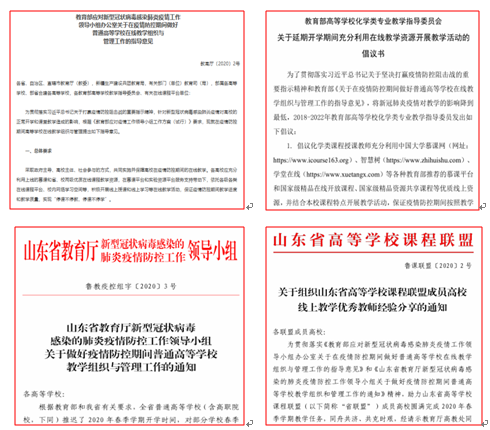 物理化学教研团队体老师查阅教育部及山东省教育厅相关指导文件,研读内容,学习精神,指导后续工作。积极参加学校牵头、智慧树平台组织的线上选课和建课培训活动,同时搜索有关线上教学经验的分享报告并加以讨论学习,更新教育理念,提高信息技术能力。